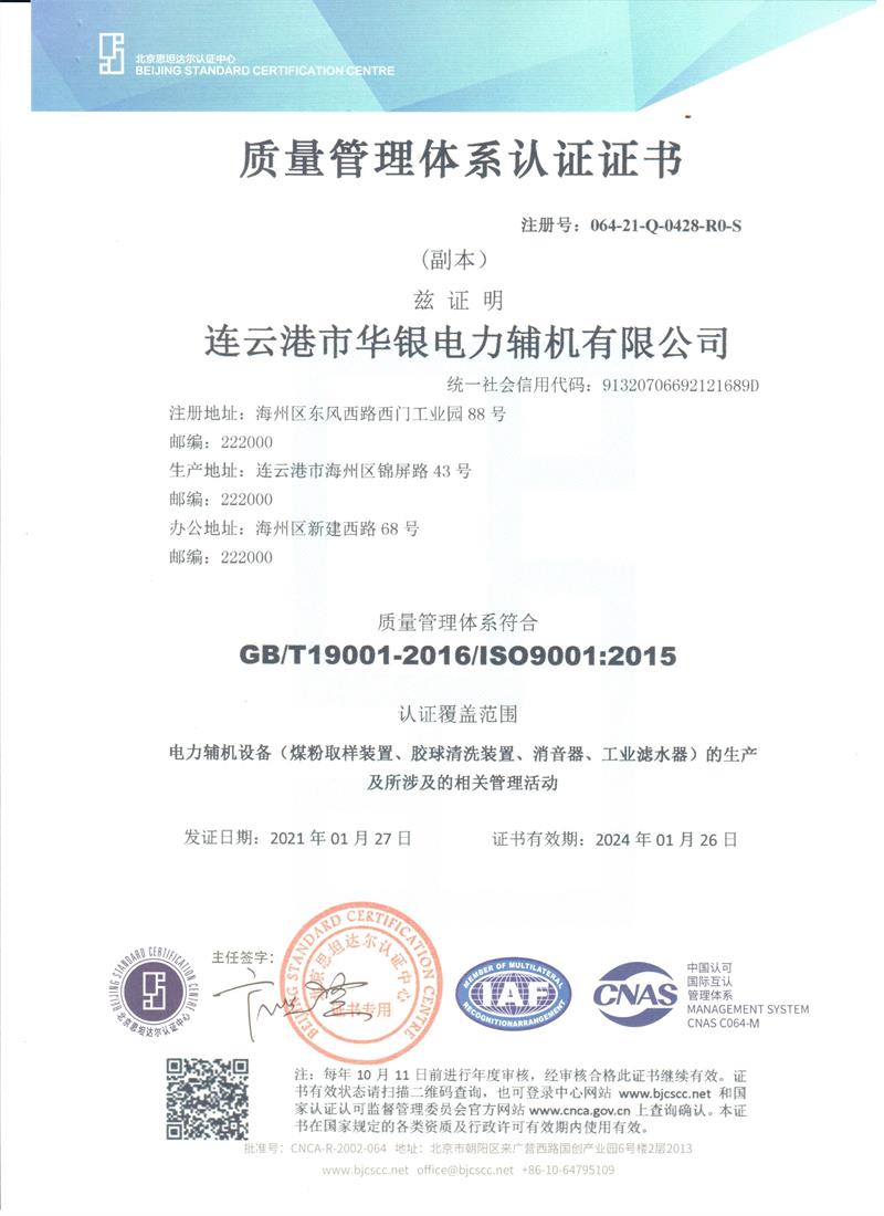 連云港市華銀電力輔機有限公司是從事電力輔機設備的開發、設計、制造、安裝、調試、和售后服務為一體的企業。我公司電力輔機產品有:隱臂式煤粉取樣裝置、固定式煤粉取樣器、風機消聲器、安全閥排汽消聲器、鍋爐排汽消聲器、蒸汽消聲器、吹管消聲器、取樣冷卻器、工業濾水器、膠球清洗裝置等系列產品。公司自創建以來,以把握市場需求為導向,研發新產品提升企業的競爭力來促進企業的發展,以生產過程***質量管理,以產品的質量來提高企業信譽,以視客戶為上帝,提供優質服務來奠定企業形象。企業文化不僅促進了公司的發展,而且壯大了公司的實力,同時也為公司贏得的信譽和榮譽。公司是市工商局電力輔機協會會員,五大電力公司招投標會員單位,先后被評為“重合同,守信用單位”,“資信等級AAA”單位。